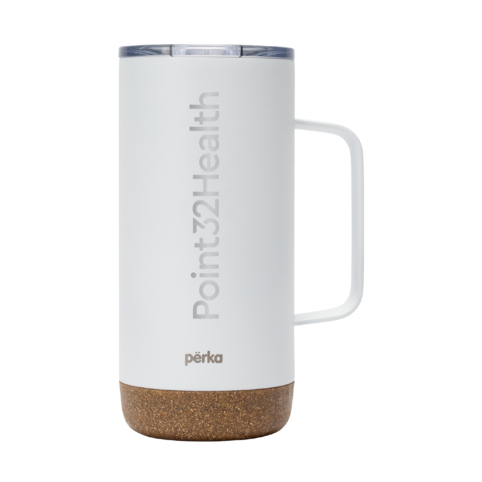The Perka® Kerstin 16 oz. double walled 18/8 stainless steel mug appeals to outdoor and indoor lovers alike. The molded cork base protects desktops from scratches and provides an earthy look for camping and its vacuum seal and copper lining helps keep your hot drinks hot for 10 hours and your cold drinks cold for 18 hours. The Kerstin's clear push-in lid with sliding closure is easy to sip from and its curved handle is comfortable to hold and large enough for most hands. It is powder coated for exterior durability and FDA compliant and BPA free. A portion of all proceeds is donated to Shelter to Soldier™, a non-profit organization that rescues dogs to train as service animals for veterans in need.
